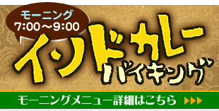 お客様にはテーブルいっぱいに並べられたお皿の中から、好きなメニューをとっていただきます。テーブルには焼きたてのあつあつナンと目が覚める!ダタールのインドカレーもあり、一緒にいただいてもらいます。きっと当ホテルの朝食を召し上がれば、がんばるビジネスマンの1日の支えになると考えております。是非、当店1階、ダタールにお越しくださいませ。