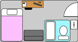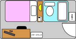 ヤングエグゼクティブのための、セミダブルに加えソファーを備えた広めのシングルルームです。あなたのサテライトオフィスとして日常の業務など余裕をもって行えます。